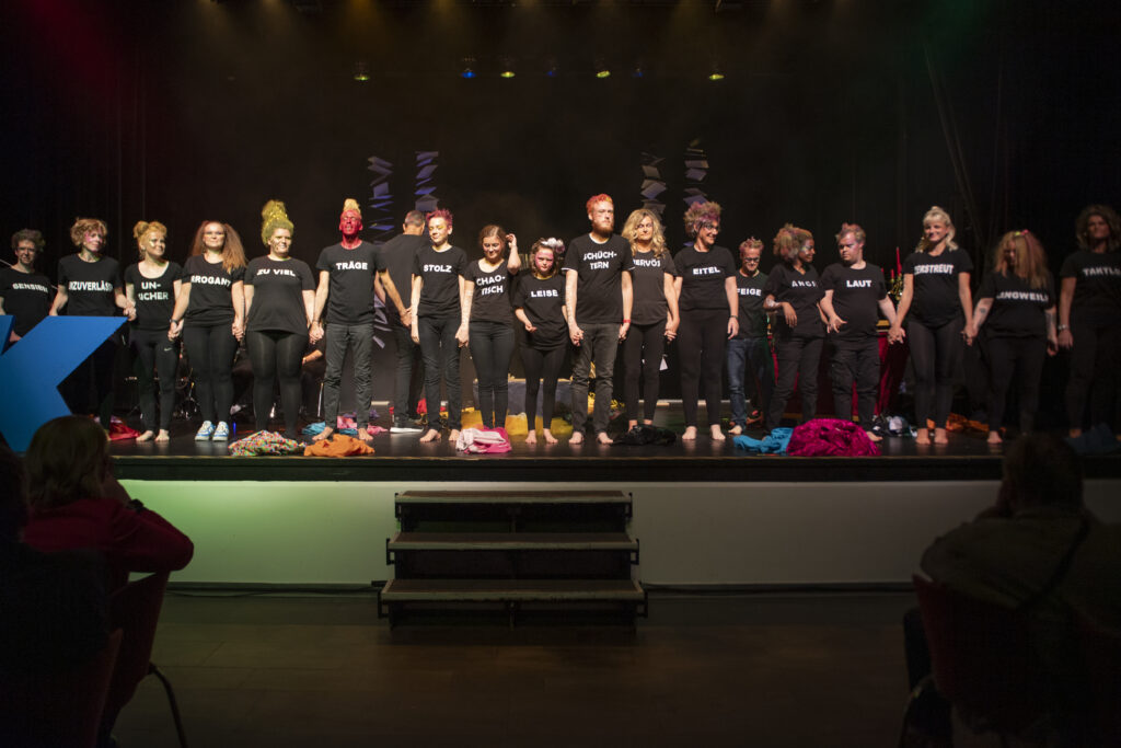 „Wir finden, dass wir als TheaterWerkstatt ein großes Vorbild für die Gesellschaft sind, in der Fehler, Schwächen oder Macken leider nicht immer akzeptiert werden“, erklärte die beiden Schauspielerinnen Laura Daniels und Joanna Bailey, bevor das selbsterarbeitete Stück „Monsterparty“ fortgesetzt wird.